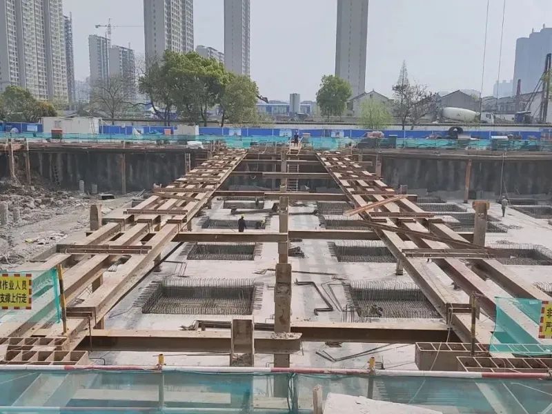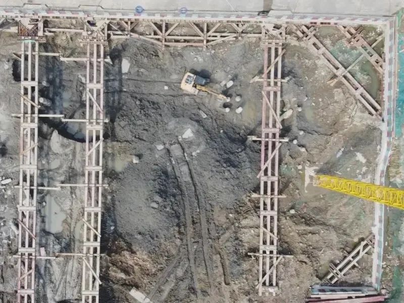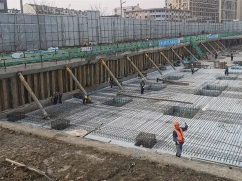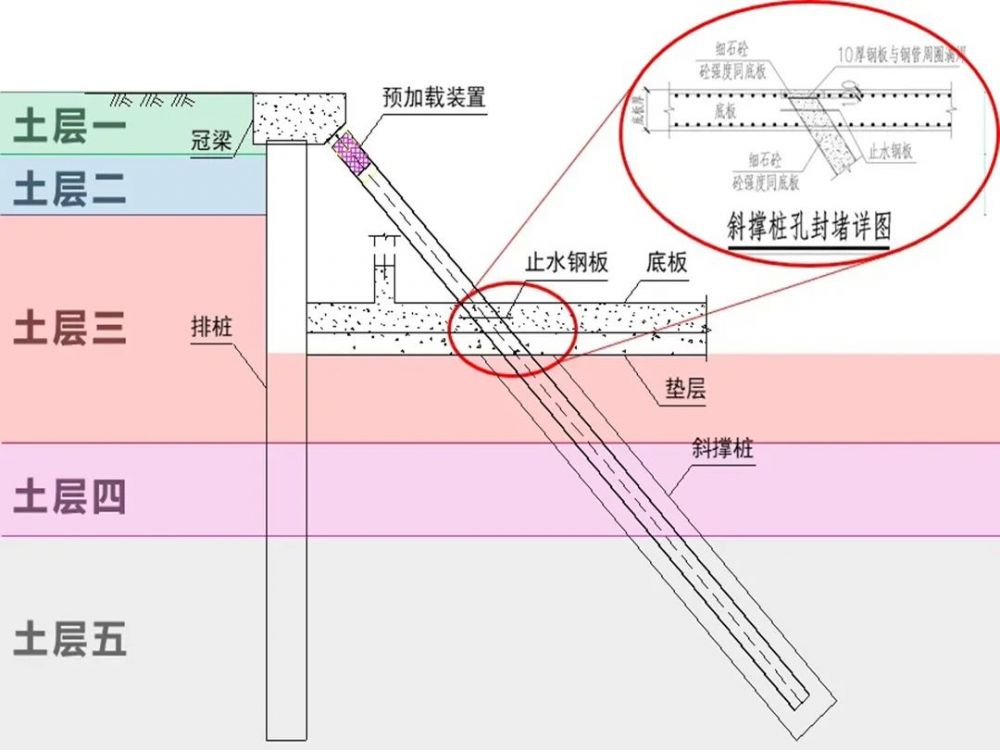 桩撑基坑支护体系,是以围护体、圈梁及斜向钢支撑组合而成的新型基坑支护体系,有效解决传统水平支撑能耗高工期长等问题:承载力高,经济性好,支撑覆盖面更小,挖土更方便;可施加预应力,利于基坑变形控制,提高基坑安全稳定性;斜撑桩可与部分桩基穿插施工,有效缩短工期节约成本。