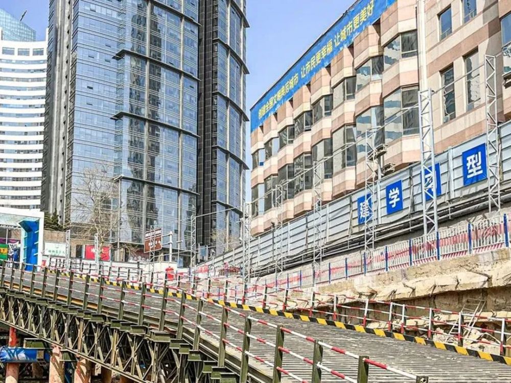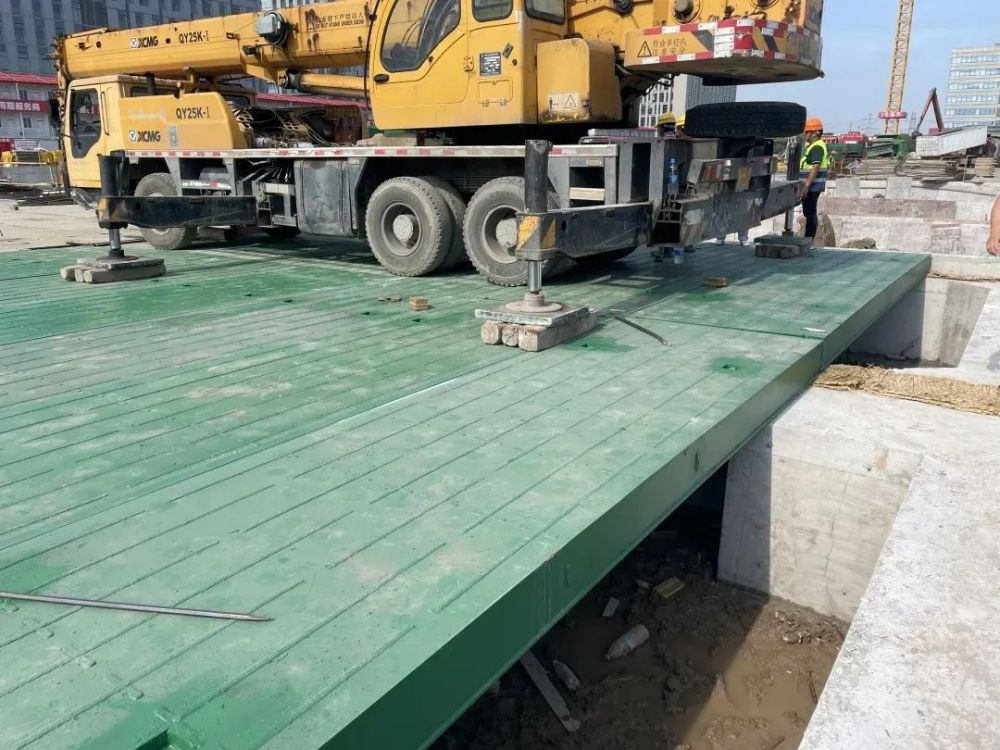 装配式基坑通道,包括贝雷梁钢坡道和装配式钢栈桥等多种体系,分别取代传统的土坡道和钢筋混凝土栈桥板:加快了土方运输效率,同时保证基坑周边支护同步施工,有效缩短工期,提升绿色施工水平;预制构件轻质高强,安装便捷施工高效,重复周转使用,提升综合效益。
