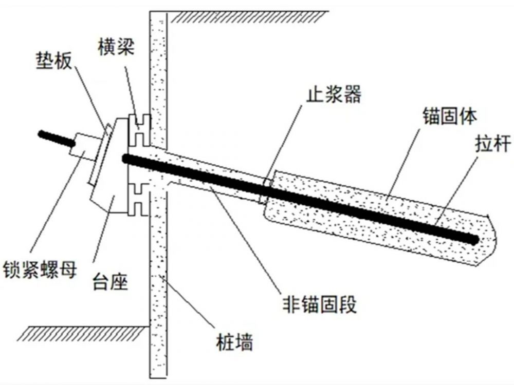 可回收预应力锚杆,应用于基坑支护由锚杆头、拉杆、锚固体组成,拉杆主筋可通过与锚具解锁回收再利用,相较于传统锚杆体系:主筋回收实现资源重复利用,绿色环保,经济高效;解决了传统锚杆成为永久性地下障碍物,一旦超出用地红线后期处理成本高昂的问题。