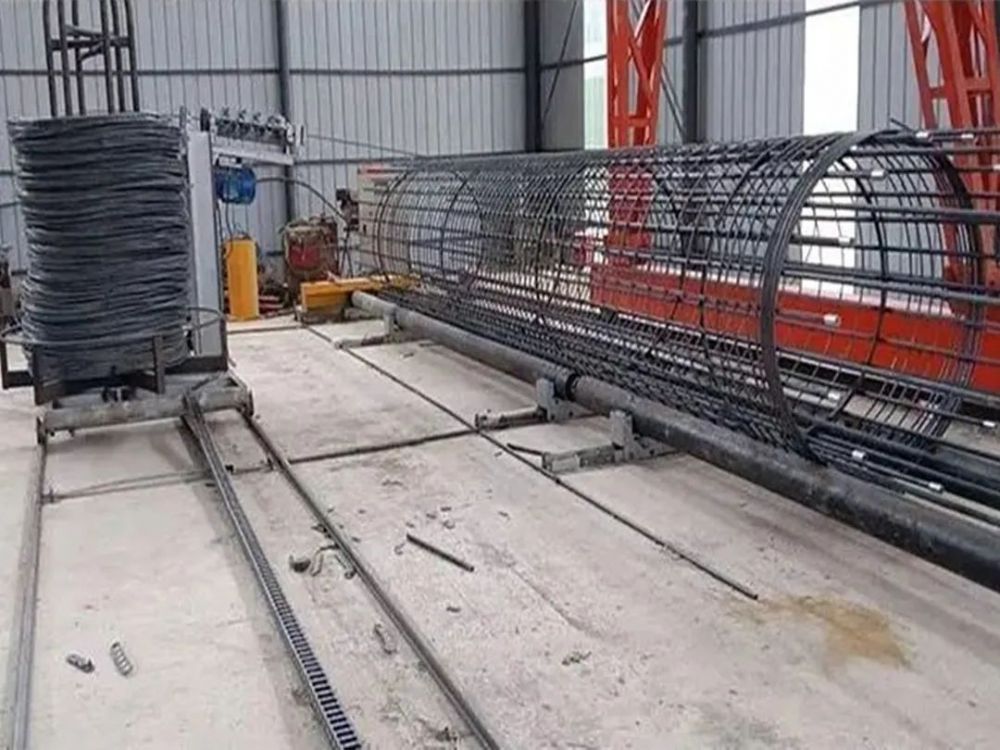 钢筋笼全自动绕筋机,是集盘条放线、钢筋矫直、绕筋成型、滚焊成型等功能于一体,自动化生产加工钢筋笼的专用设备,相对于人工绑扎焊接钢筋笼传统工艺:自动化加工,生产速度快,大大节省人力成本,提高施工进度与质量;操作简单,工人经过简单培训即可上岗,大直径钢筋笼加工优势更为明显。