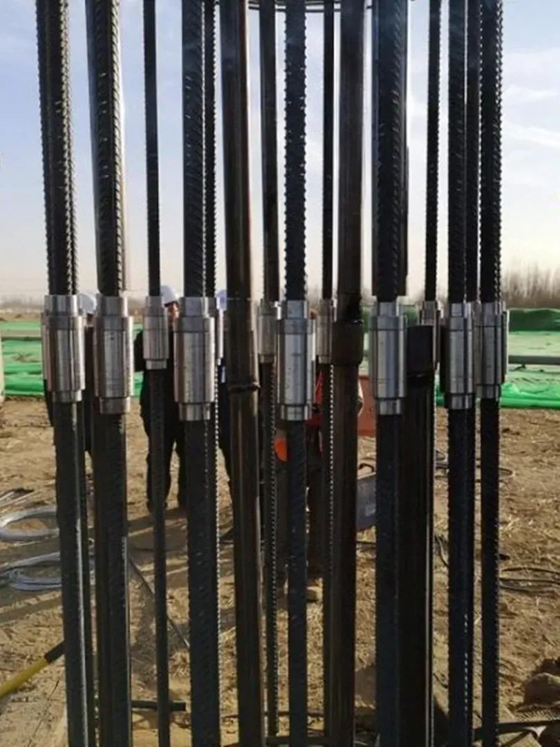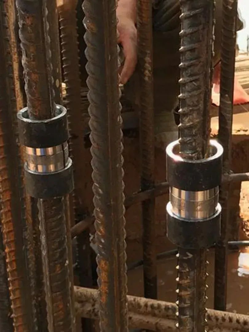 钢筋快速连接套筒,常见的有双螺套连接套筒、分体式连接套筒、冷挤压连接套筒三种,分别通过旋转外螺套、锁紧锁套、挤压套筒的方式,无需转动钢筋,实现高效连接,相较于传统机械连接或焊接,对钢筋的适应性强,全机械便携式作业,实现高效率高质量施工。