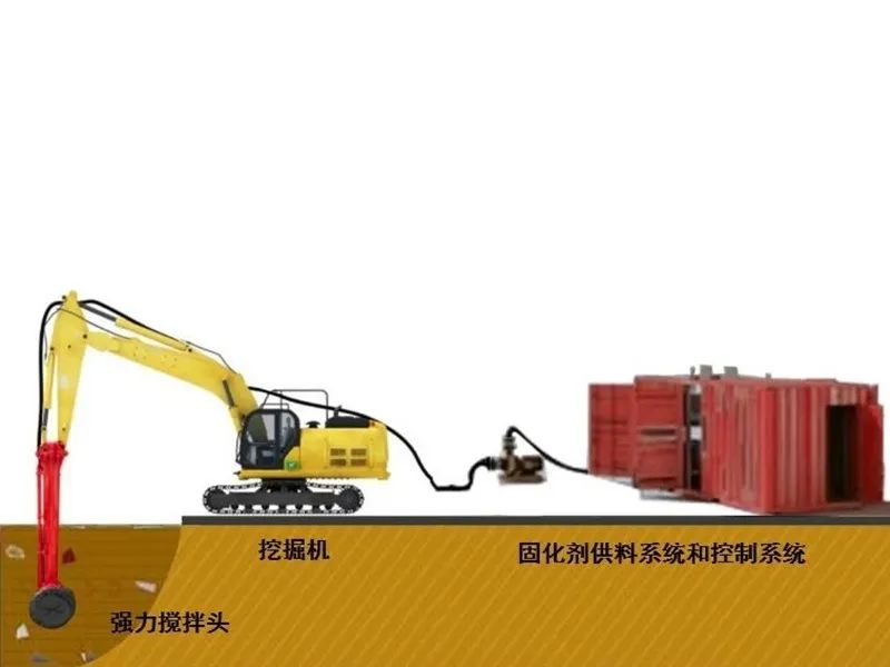 就地固化地基处理技术,是将土壤固化剂就地掺入地基软土或淤泥中进行搅拌,固化土壤并达到设计承载力的强度要求,在软土地基处理中取代传统换填法:无需开挖、无需换填,工艺简单,施工快捷,减少人员及资源投入;无需开挖及外运处置淤泥渣土,绿色环保,降低综合成本;强度为胶凝固化形成,质量稳定可靠。