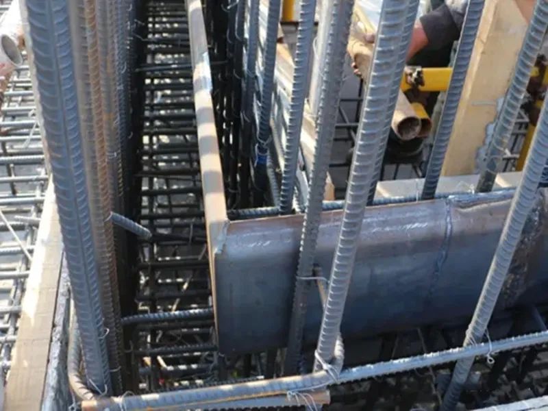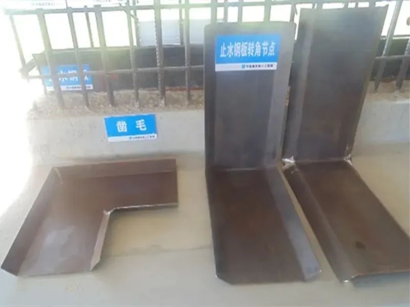 成品止水钢板转角,采用工厂预制化制作,相较于传统止水钢板转角施工:解决了转角处空间狭小不宜操作的难题,施工方便、提升效率;取代了传统现场焊接工艺,质量可控,杜绝了止水钢板转角处渗漏水通病。