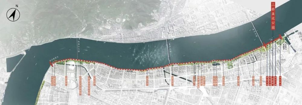 设计概念围绕“橙蓝丝带、超级海塘、城市切片”展开,从“亚运”到“日常+”,逐步转变和提升滨江公共空间的环境。通过这些设计策略,项目不仅强化了公共空间的生态性和功能性,还将沿江区域与城市腹地无缝连接,实现了多主题的城市切片布局。