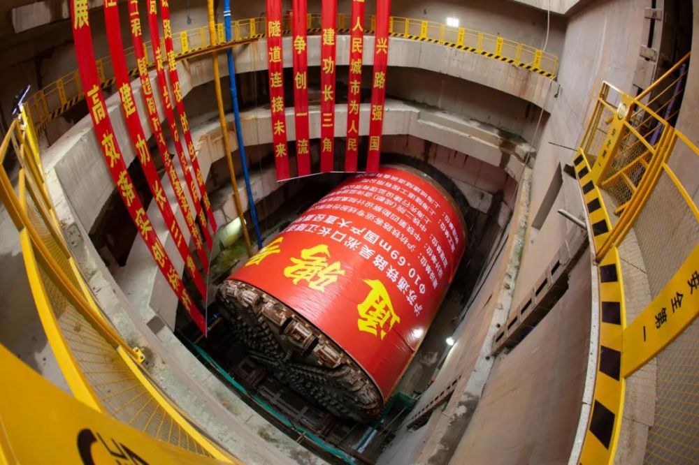10月28日15时许,在上海市宝山区友谊路街道富锦东路漠河路施工现场,圆满完成“渡江”使命的两台国产大盾构“沪驰号”“通骋号”并肩横卧在40米深的宝山接收井,标志着沪苏通铁路太仓至四团段吴淞口长江隧道越江段实现双线贯通。